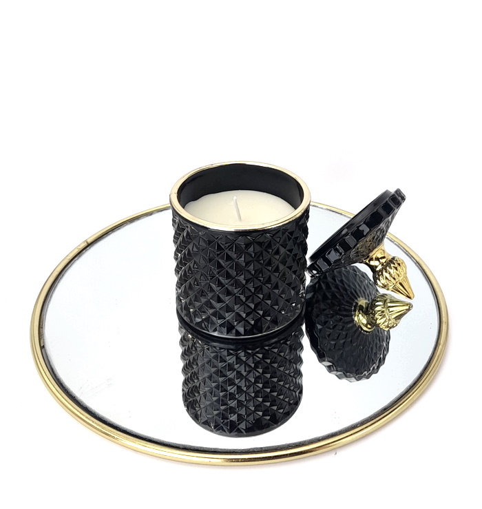 Aρωματικό κερί σε γυάλινη φοντανιέρα, ιδανικό για να προσφέρει ζεστή και χαλαρωτική ατμόσφαιρα στο χώρο σας.