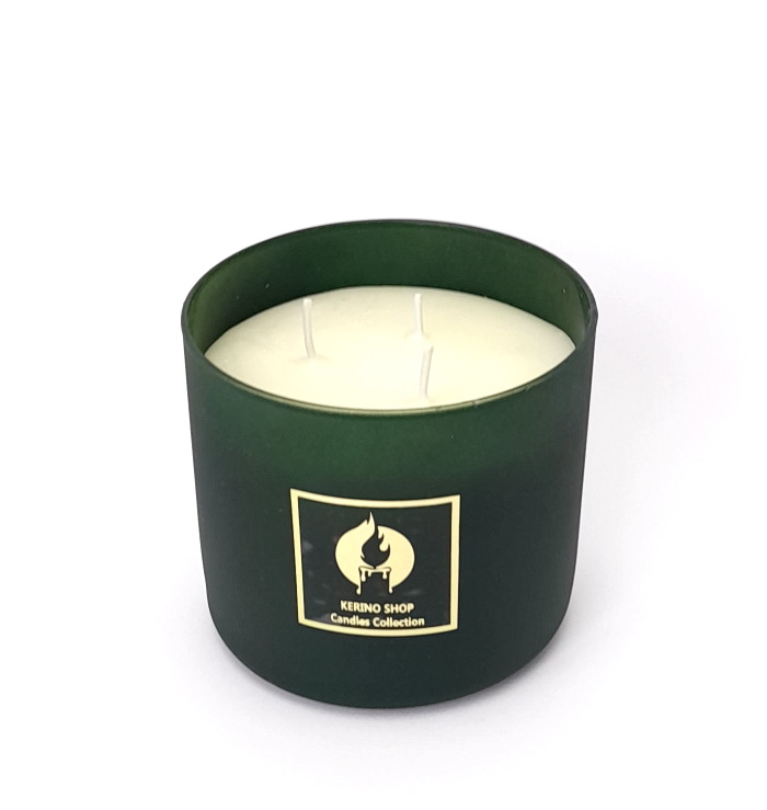 Αρωματικό κερί σε πράσινο ποτήρι 600ml, με τρία φυτίλια, για έντονο άρωμα και ατμοσφαιρικό φωτισμό σε μεγαλύτερους χώρους.