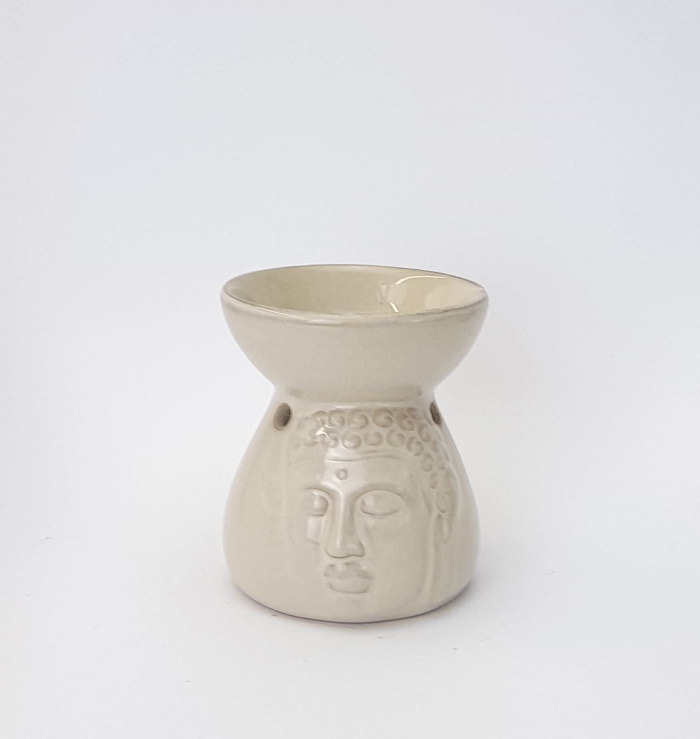 Κεραμικός αρωματιστής εκρού με ανάγλυφο πρόσωπο Βούδα.