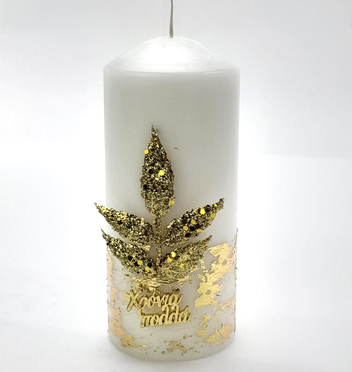 Κερί χριστουγεννιάτικο κυλινδρικό χρυσή φτέρη