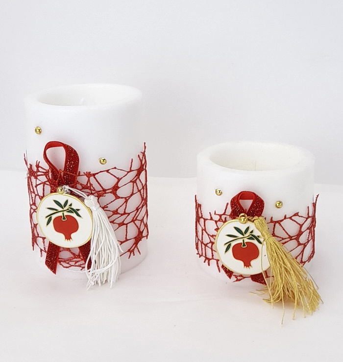 Κερί χριστουγεννιάτικο κυλινδρικό με γούβα ρόδι σε σμάλτο