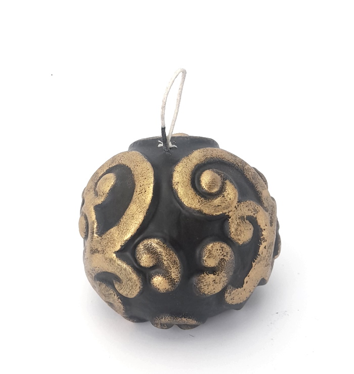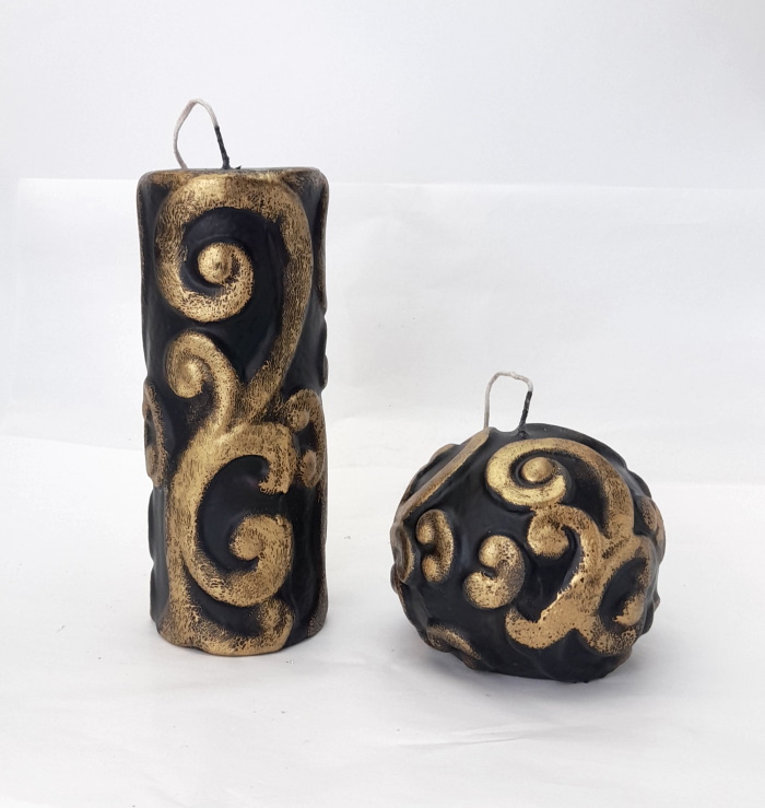 Κεριά ανάγλυφα σε μαύρο χρώμα με χρυσό σχέδιο, για κομψή γιορτινή διακόσμηση.