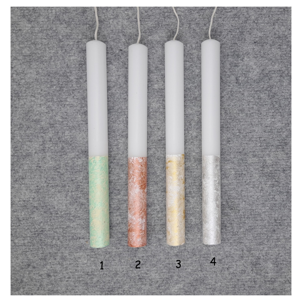 Πασχαλινές Λαμπάδες Κυλινδρικές διάστασης 2,5 Χ 25 cm βαμμένες στο κάτω μισό με τεχνοτροπία ΑΡΤΙΦΙΣΕΛ.