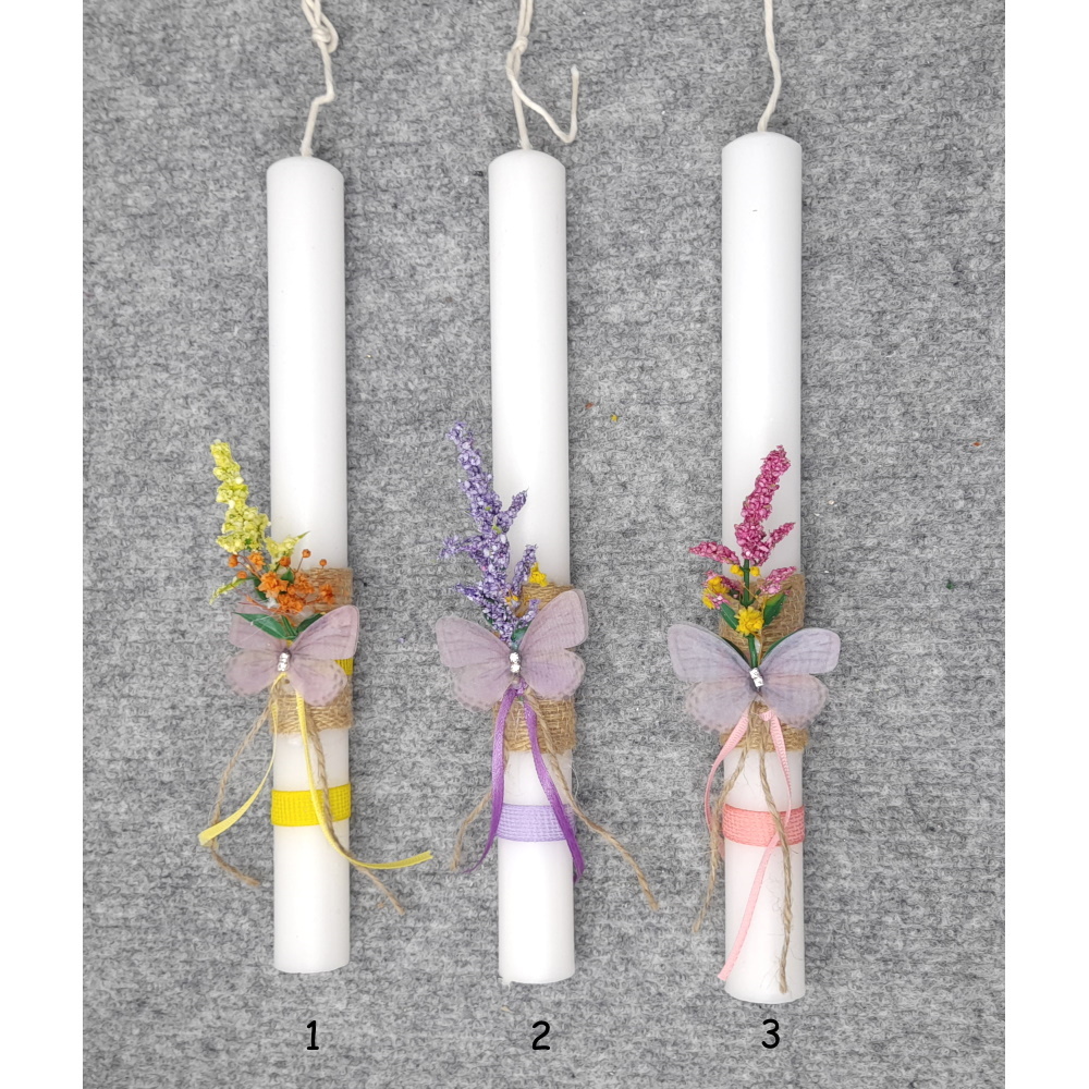 Χειροποίητες Πασχαλινές Λαμπάδες Κυλινδρικές διακοσμημένες με Πεταλούδα