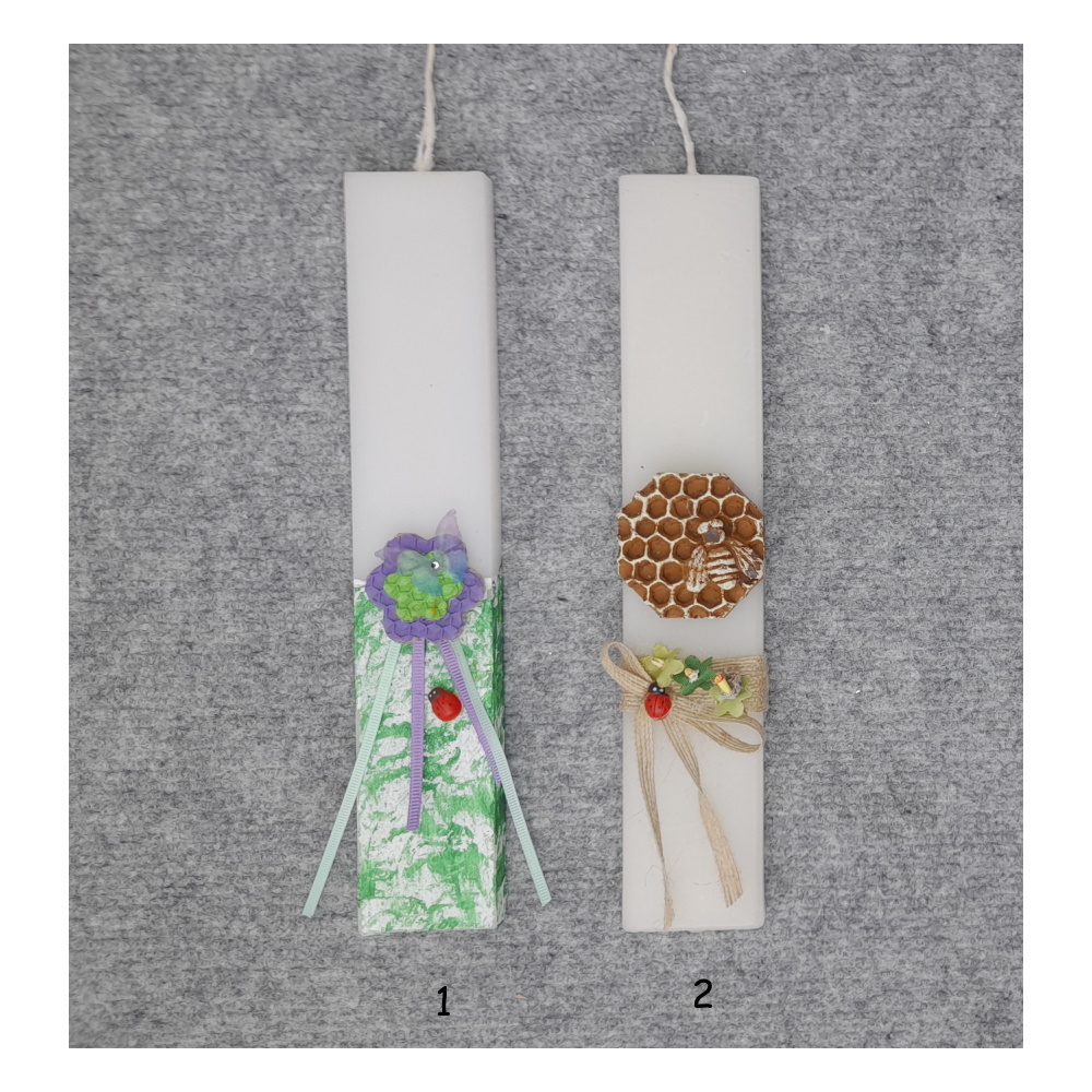 Χειροποίητες Πασχαλινές Λαμπάδες Πλακέ με διακόσμηση κηρήθρα