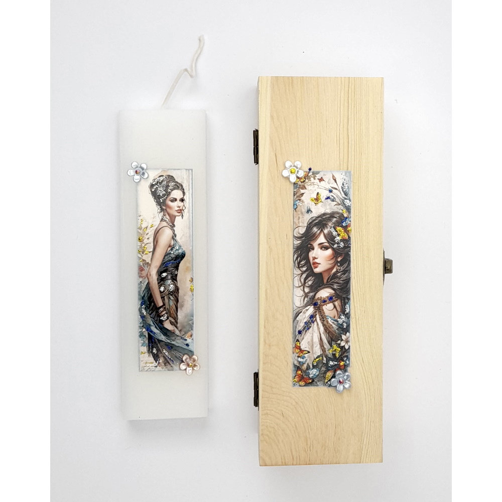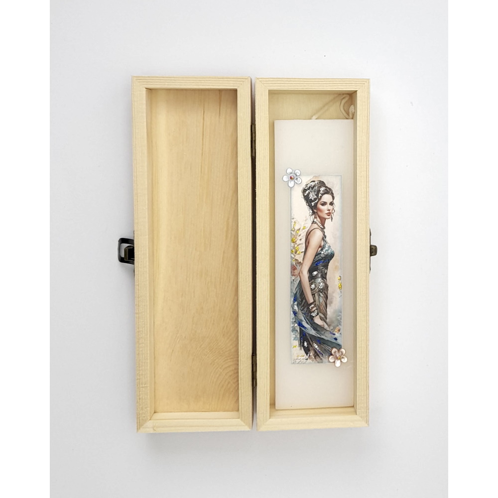 Πασχαλινή Λαμπάδα ΓΥΝΑΙΚΕΙΑ ΦΙΓΟΥΡΑ Χειροποίητη με ασορτί διακοσμημένο ξύλινο κουτί