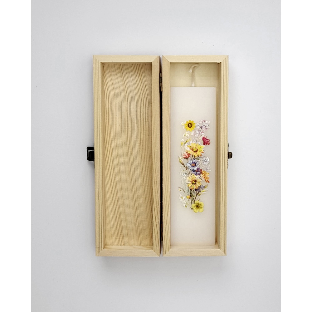 Πασχαλινή Λαμπάδα ΛΟΥΛΟΥΔΙΑ ΚΛΑΔΙΑ Χειροποίητη με ασορτί διακοσμημένο ξύλινο κουτί