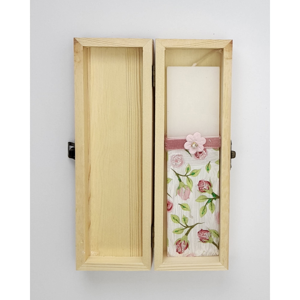 Πασχαλινή Λαμπάδα ΤΡΙΑΝΤΑΦΥΛΛΑ ΜΙΝΙ Χειροποίητη με ασορτί διακοσμημένο ξύλινο κουτί
