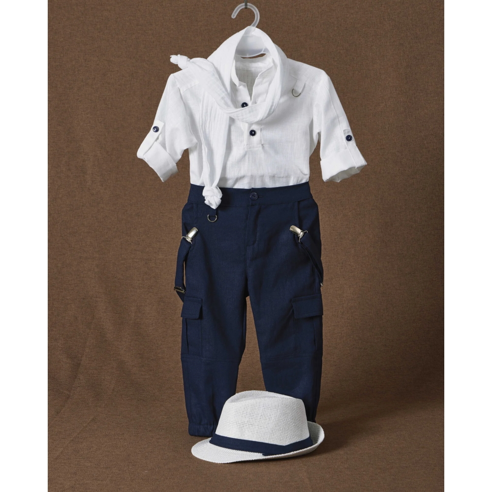 Πουκαμίσα με μαο γιακά και μπλε cargo παντελόνι
